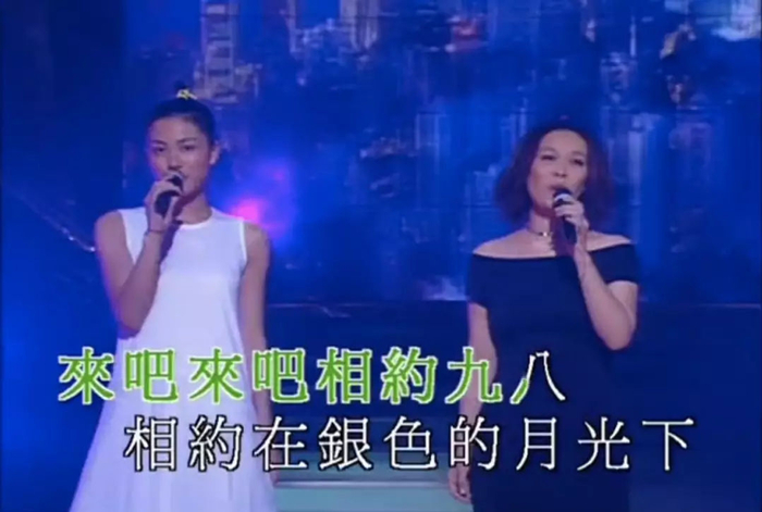 当那英和王菲一左一右从两侧出现在台上的时候,就已经预示着她们将奉献上一首完全不同于公众以往认知的那种“喜气洋洋的主旋律歌曲”,而是呈现出了一种高冷又散发着热情,沉稳又折射出灵动的作品:“来吧,来吧,相约九八,来吧,来吧,相约九八,相约在银色的月光下,相约在温暖的情意中。”