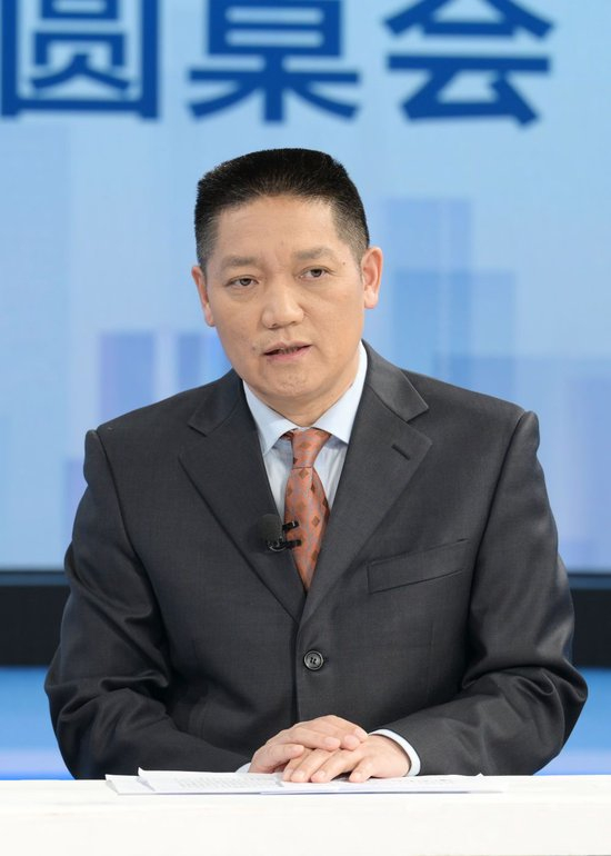 国家发展改革委社会司副司长、一级巡视员彭福伟在第十二期“中国经济圆桌会”录制现场交流发言。新华社记者 李贺 摄