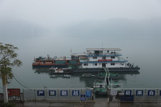 下午2时30分,“渝忠客2180 ”准时启程返航,不到5分钟,客船便消失在雾气中,江面上只留下一道水痕。