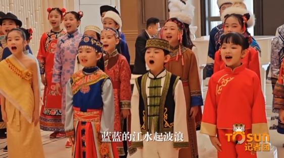 宴会厅外,40名身着中外民族服装的少年儿童唱起优美的黑龙江民歌《乌苏里船歌》,用真诚美妙的歌声表达对国际贵宾的欢迎。活动开始前,ToSun记者团来到了小朋友们的排练现场,热情的孩子们有很多话想要分享!一起去看看!