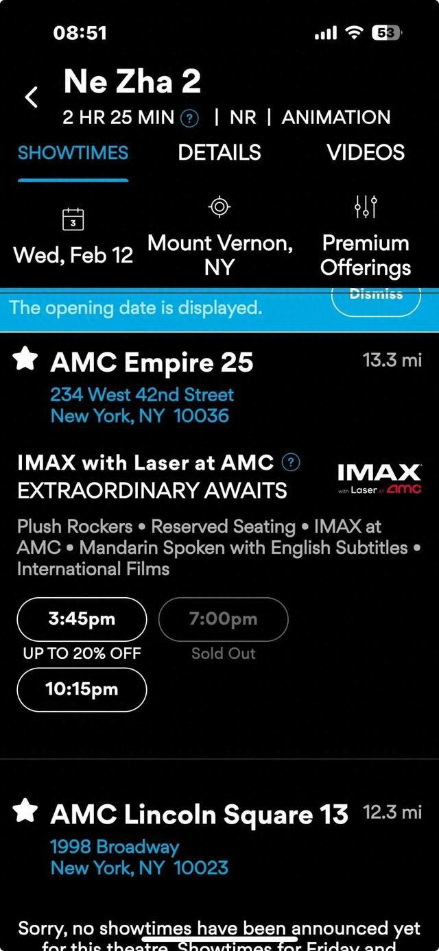 《哪吒2》登上纽约时报广场大屏,美国多家影院一票难求