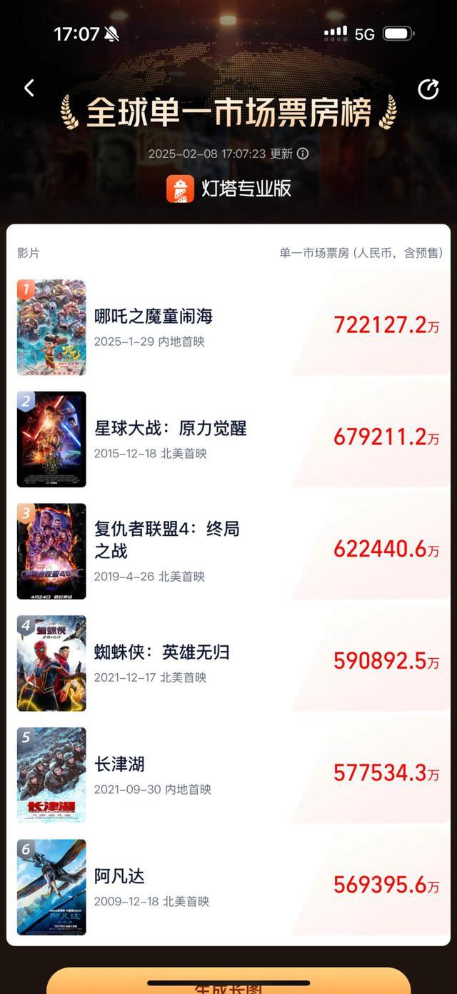 据相关媒体报道,业内人士表示,目前全球影史票房前三十名仍由好莱坞垄断,还没有任何一部中国电影上榜。《哪吒2》目前票房超过72亿元(约9.87亿美元),与第三十名《海王》(11.5亿美元)的门槛还有约1.7亿美元的差距。如按照预测票房,《哪吒2》仅靠国内票房将摸到全球影史票房前30的“门槛”。
