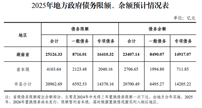 在地方债务方面,湖南预算报告要求今年加强债务风险防范。强化置换债券资金监管,优先置换债务成本高、涉众风险突出的隐性债务,严防政策执行走偏和道德风险。加大平台压降力度,严禁通过各类企事业单位新增隐性债务。拓展财会监督范围,实现财政、园区、平台“三本账”全覆盖,坚决避免一边化老债、一边添新债。