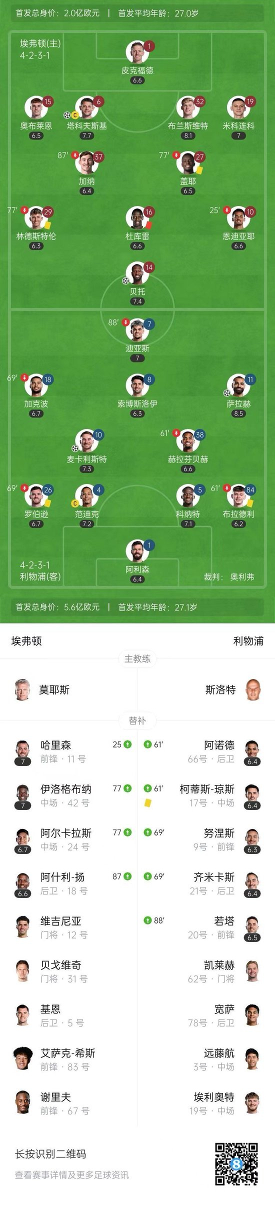 第67分钟,埃弗顿角球开出,禁区内头球摆渡,奥布莱恩压住范迪克头球一做,布兰斯维特前点破门,但越位在先,进球无效。↓