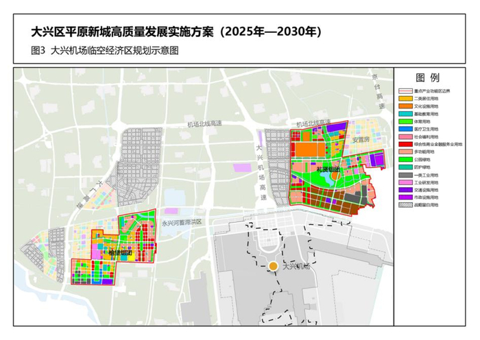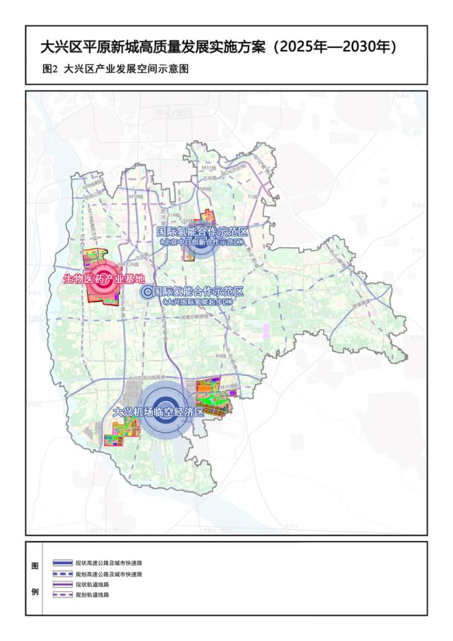 在具体建设规划中,大兴区将点燃临空经济新引擎、壮大主导产业新优势、引领未来能源新变革、打造产城融合新典范。刘洋介绍,大兴区将加强大兴机场航空资源配置,聚力壮大航空运输服务保障产业集群,加速形成千亿级临空经济产业规模。同时以生物医药产业基地为主阵地,集聚资源要素,全力建设“具有国际影响力的中国药谷”,构建生命健康“高端制造”和“现代服务”两大廊道,辐射带动跨区域产业协作。大兴区还将以国际氢能合作示范区为载体,全面投用国家氢燃料电池汽车质量检验检测中心,出台加氢站数据采集等标准,积极参与建设北京市氢交易中心,推动氢碳交易向京津冀拓展,支持优质氢能企业做强扩能,聚焦高附加值环节强链补链,打造示范引领京津冀的氢能产业集群。此外,还将持续推进轨道交通R4线、19号线南延进程,高效推进大兴新城西片区开发建设和新城核心区城市更新,提速北京第四实验学校、安定医院等优质公共服务资源供给。