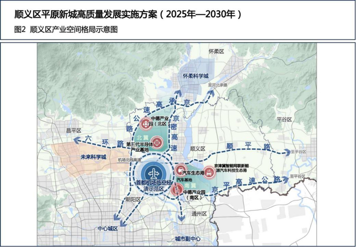 在顺义区平原新城高质量发展实施方案中,国际化类海外、临空经济先行区、产城融合国际新城是重要的关键词。顺义区委副书记、区长崔小浩介绍,顺义设定了15项高质量发展指标,如到2030年:经济总量将突破3300亿元、现代服务业增加值实现1500亿元、天竺综保区年进出口额超过2000亿元、对外骨干交通廊道达到12条等。