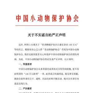 2月14日,针对不实谣言,中国小动物保护协会发布严正声明。中国小动物保护协会从未和潘宏或其相关方有任何接触,更不存在所谓的“100万元款项”一事。