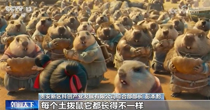 贵安新区科创产业发展有限公司综合部部长彭本黔称:“导演要求每一个天兵都要有自己的一个构图,每个土拨鼠都长得不一样,对渲染的算力要求很高,要是渲不好就很模糊了。整个《哪吒之魔童闹海》制作耗时5年,在我们这里渲染基本上都用了小三年的时间。”