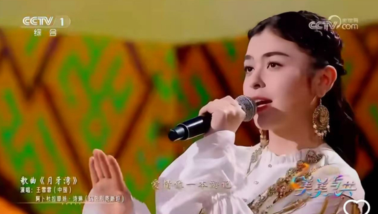 另外,在之前的1月19日,她还曾和歌手王霏霏同台演唱歌曲《月牙湾》。