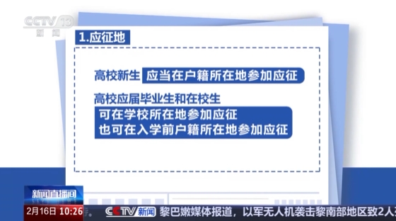有入伍意愿的高校新生,应当在户籍所在地参加应征;高校应届毕业生和在校生可在学校所在地参加应征,也可在入学前户籍所在地参加应征。