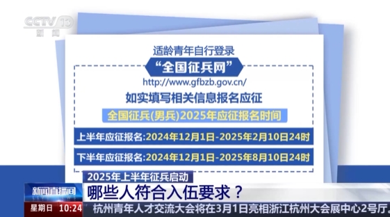 2025年上半年征兵体检、审核工作从昨天(15日)开始全面启动,至3月31日结束。《中华人民共和国兵役法》规定,每年12月31日以前年满十八周岁的男性公民,都应当按照兵役机关的安排在当年进行初次兵役登记。今年征兵有哪些政策要求,对年龄条件有哪些限制?我们一起来了解。