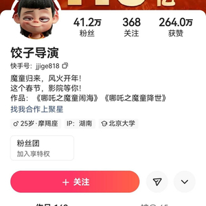 封面新闻记者注意到,在最大的两个短视频平台上,分别有数十个可疑账号,粉丝量在几百到数十万之间。这些账号主要以“饺子”“饺子导演”“饺子(杨宇)”之类的名字命名,用魔童哪吒或者杨宇的照片作为头像。