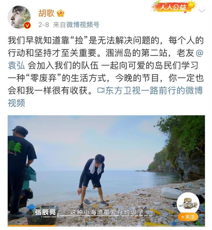 在这篇文章中,胡歌谈到了自己正在参加的节目《一路前行》第二季,表示希望用身体力行的方式去传播科普。他希望通过节目让观众关注越来越年轻化的环保主力军,希望记录下年轻人对于“环保”的认识和付出。