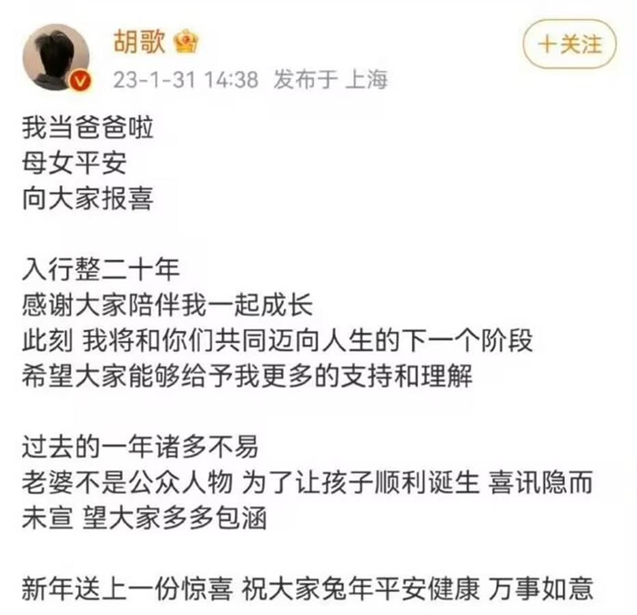 (图片为《繁花过后》文章截图及胡歌微博截图)