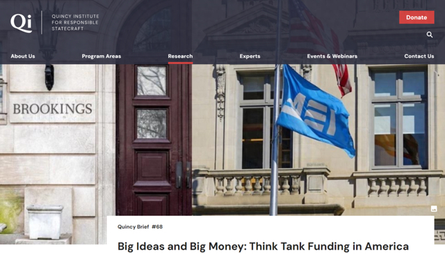 近日,美国昆西治国方略研究所(以下简称“昆西研究所”)发布报告,梳理分析了美国最具影响力的50家智库2019年至2023年接受资金情况。报告显示,台湾民进党当局向这些智库提供了至少约515万美元资助,在给美国智库提供资金的“其他国家或地区”中名列第十。