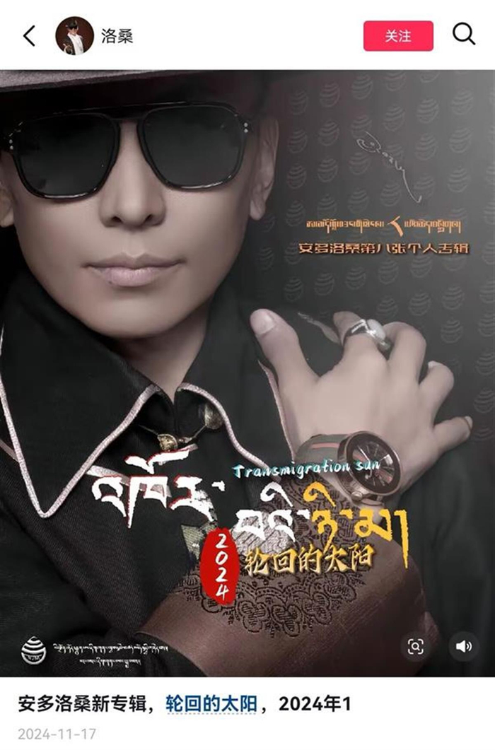 据了解,安多洛桑以其独特的嗓音和经典藏语歌曲在藏区广受欢迎,曾是90后藏族人的青春记忆。极目新闻记者梳理他的个人账号发现,其代表歌曲有《拉萨》《独一无二》《阿洛爸爸》等,去年发行了第八张专辑《轮回的太阳》,最后一条更新的视频停留在去年的12月15日,内容为《不能没有你》新歌上线。