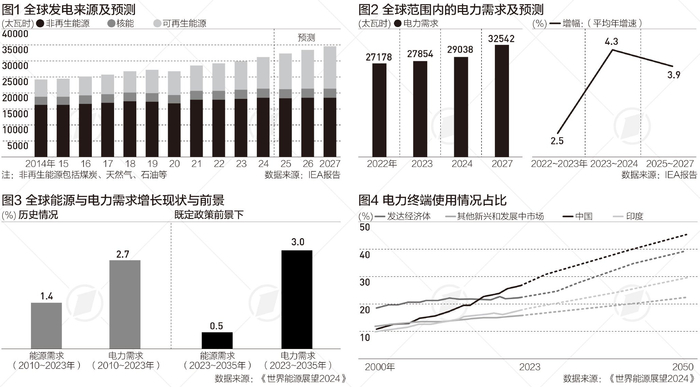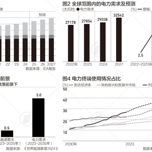 国际能源署认为,全球电力消耗预计将在2025~2027年间快速增长,这源于国际社会中工业生产需求的增长、空调使用量的增加、电气化的加速以及全球数据中心的扩展。