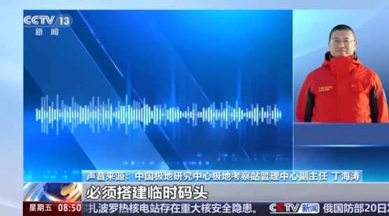 中国极地研究中心极地考察站管理中心副主任 丁海涛:刚到乔治王岛的时候,物资转运到陆地上,必须搭建临时码头。