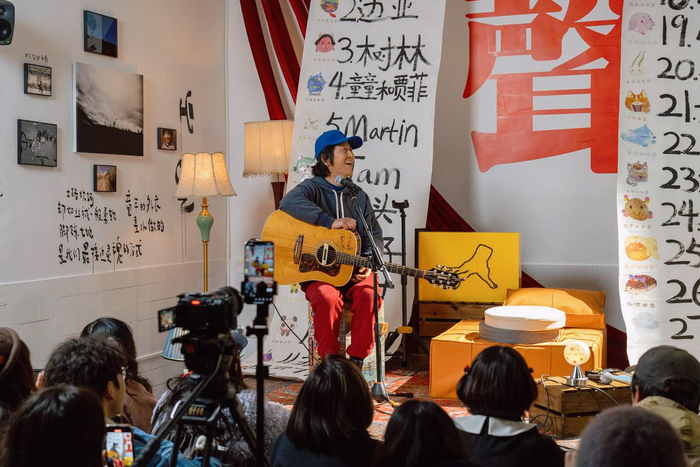 这份表达甚至不一定要用唱歌的形式——曾多年为小酒馆活动担任义工的一位大哥是曲艺爱好者,打着快板给大伙儿来了一段《白蛇传》;有人戴着墨镜弹唱了一首街头卖艺人的金曲《流浪歌》,曲毕嘱咐大家:听完这首歌,给你妈妈打个电话;还有女孩穿着厚厚的模拟衣登场,捧着Loop机来了一段旁若无人的哼唱…………