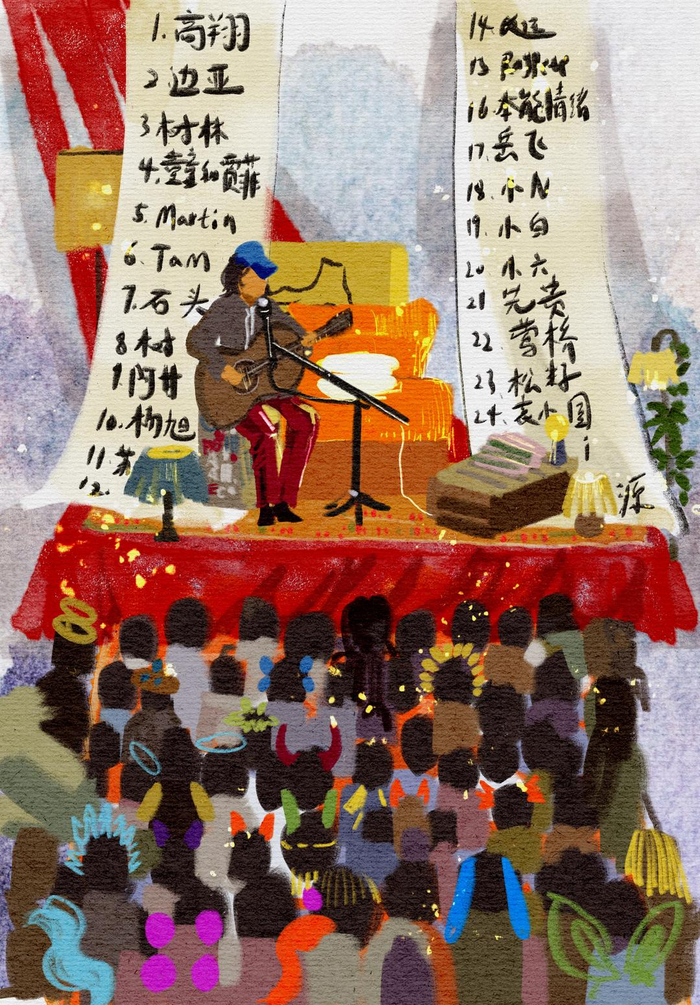 30名演出者依次上台,轮流用同一把木吉他弹唱,通过这种朴素而充满温情的方式,在同一个舞台上分享各自纯粹的音乐情感。