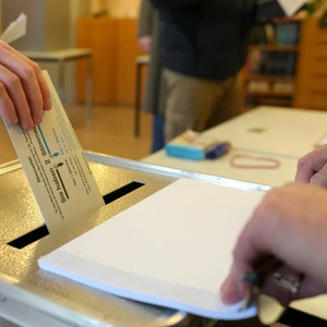 2月23日,在德国首都柏林,一位选民将自己的选票放入投票箱。当日,德国举行新一届联邦议院(议会下院)选举。新华社/美联