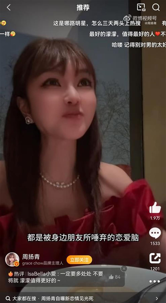 周扬青公布情人节约会对象:他也是个“恋爱脑”,我还没答应在一起