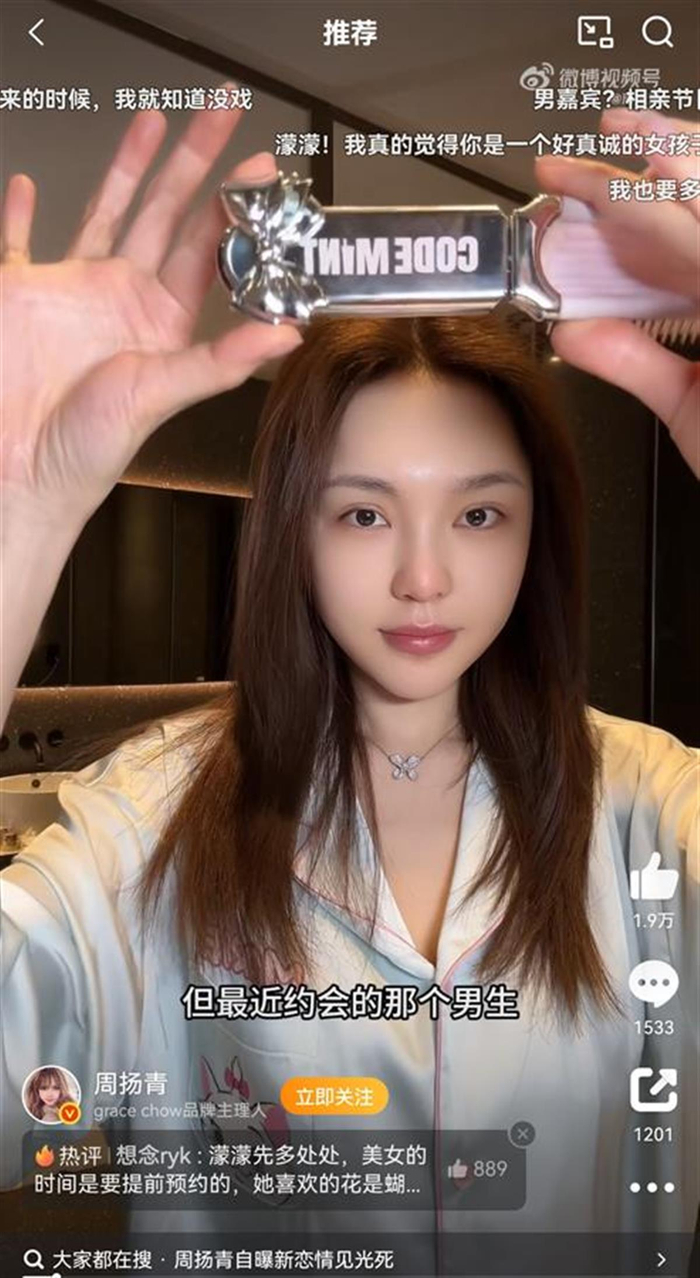 公开资料显示,周扬青为中国内地网络红人,服饰品牌GRACE CHOW主理人。