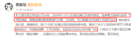 黑猫投诉发布2024年度数码产品领域红黑榜榜单:索尼电视一周现气泡售后拒换货