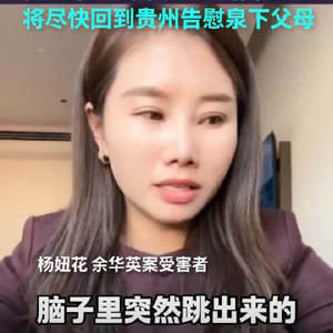 #杨妞花说得知消息后脑中跳出两座坟#【余华英被执行死刑,杨妞花:脑中先跳出两座坟,将尽快回到贵州告慰泉下父母】2月28日,贵阳中院依照法定程序,对余华英执行死刑,澎湃新闻对话杨妞花。@杨妞花 说,得知这一消息后,自己脑中先跳出两座父母的坟,将尽快回到贵州告慰泉下父母。#杨妞花说感谢用正义去跟邪恶较量#