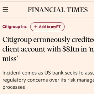 史上最大“乌龙指”!花旗银行误给一客户存81万亿美元,足以收购整个美国股市
