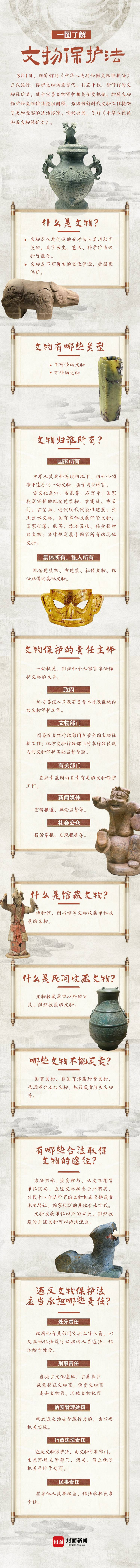 1982年11月19日,文物保护法作为我国文化领域第一部法律颁布实施,基本确立了我国文物保护的法律框架。此后经过1991年、2007年、2013年、2015年、2017年5次修正、2002年1次修订。而自3月1日正式实施的文物保护法,是该法时隔20多年再次修订。
