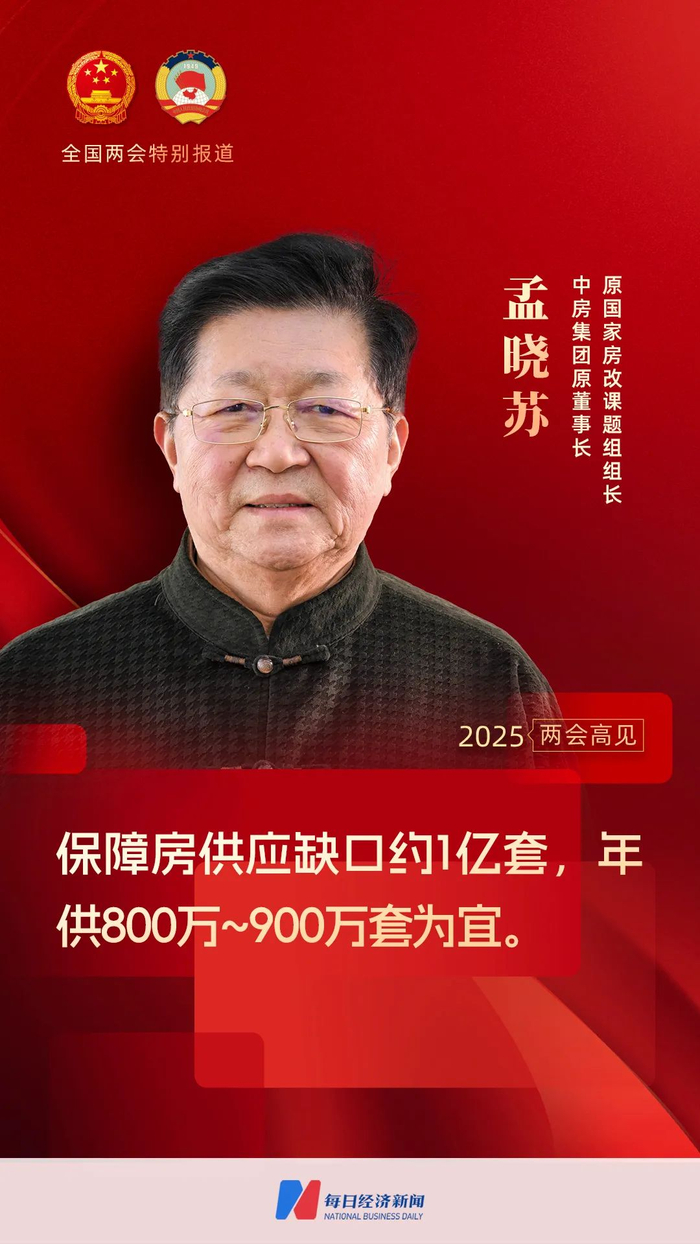 我国保障房需求到底有多大?由地方国有企业收购的存量商品房能否改造成保障房?围绕这一系列话题,在2025年全国两会召开前夕,原国家房改课题组组长、中房集团原董事长孟晓苏接受了《每日经济新闻》(以下简称NBD)记者的专访。