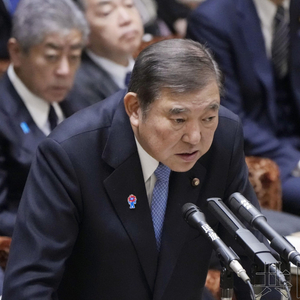 日本首相石破茂出席参院预算委员会会议 共同社