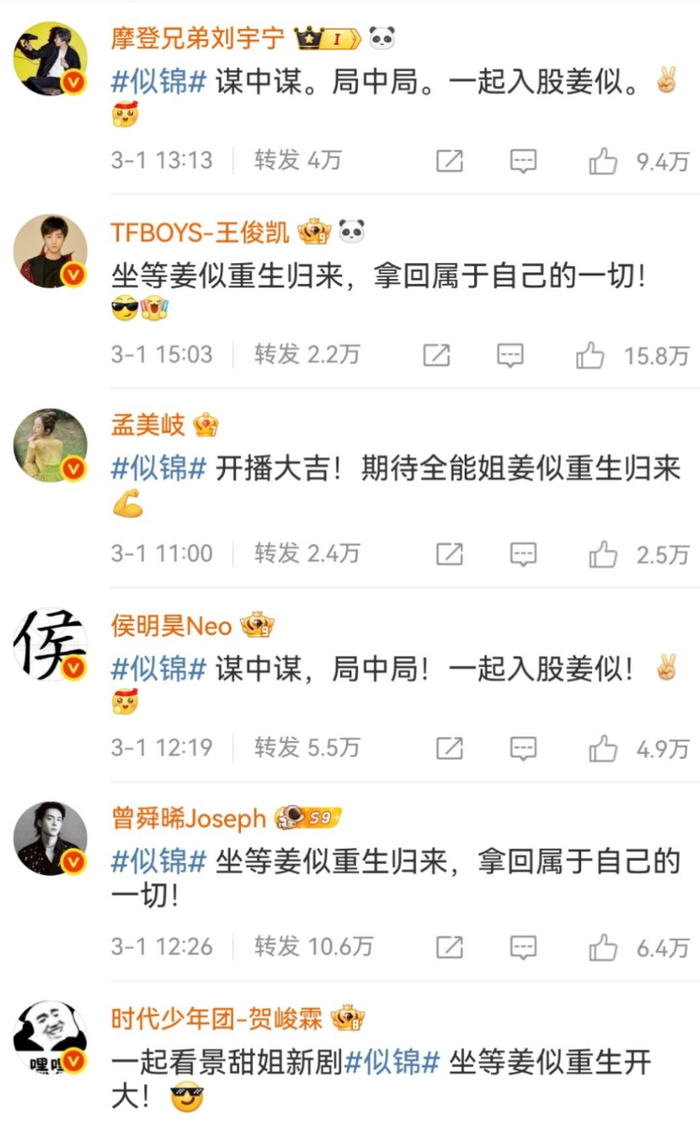 为了助阵景甜新剧,王俊凯、刘宇宁、李一桐、王源、宋茜等半个娱乐圈的人都来打call~