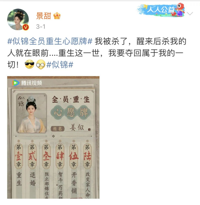 其实,景甜早在自己的微博透露了新动向,偷偷更换了头像,还多次发文安利新剧,“重生这一世,我要夺回属于我的一切!”“敢惹我姜似?你算是踢到铁板了!”