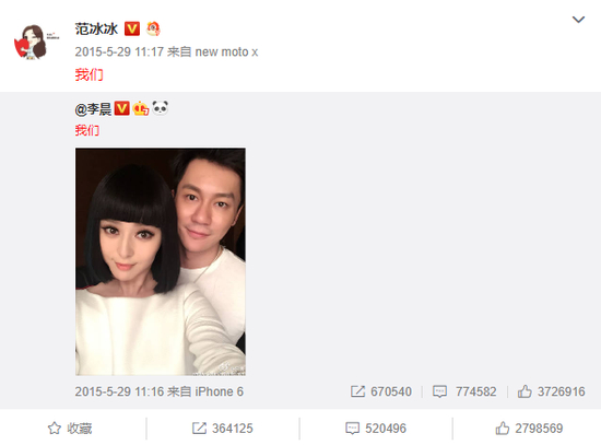 它首次尝到这种滋味是2015年。那年5月,范冰冰与李晨微博主动公开恋情,虽然配文只有简单的两个字“我们”,但在舆论场掀起了惊涛骇浪,一个小时的转发评论量达到惊人的200万次,大量品牌商的借势传播还让热度持续发酵。