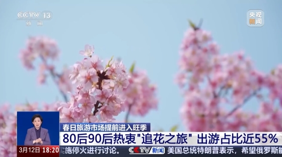 来自中国旅游研究院的消息,今年春季,梅花、油菜花、樱花等陆续迎来盛花期,全国各地呈现由南往北次第盛开、百花齐放的格局。在线旅游平台数据显示,80后、90后更热衷于“追花之旅”,出游人次占比接近55%,省内周边游占比20%,住宿时长在2天及以内的订单占比为60.6%。