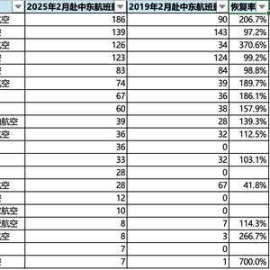 疫情后,国内航司陆续新开和恢复的国际航线,中东可以说是最卷的方向之一。目前,中国到主要中东国家的航班量都超过了疫情前。