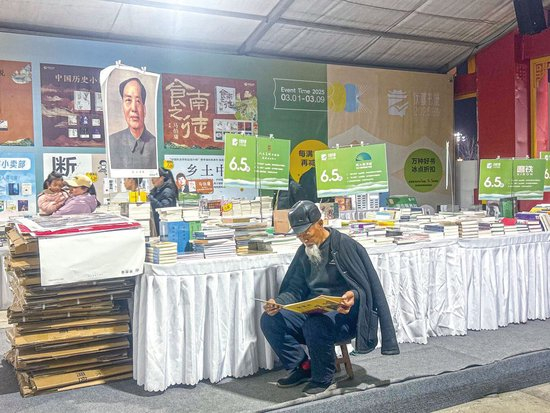 同时,一场特殊的书展正在举行。景区旁一个简易的展棚里,书客如织、读者成云。几个瞬间让记者难忘: