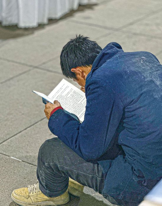 ——书展临时搭建的棚子虽然不大,甚至连书桌座椅都没有,可一群孩子却席地而坐,津津有味地看了几个小时。老人自带小板凳看到深夜闭展才离馆,还接连感叹“虽然岁数大了,还是感觉知道的事理太少”。书展出口处,几乎没有人空手出门。