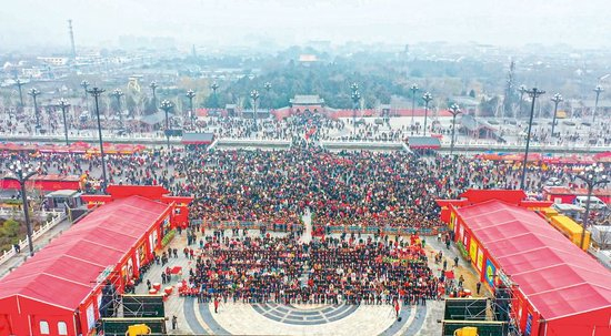2025年3月1日,第三届周口伏羲书展在周口市淮阳区伏羲文化广场正式启动,图为开幕式现场盛况。杨正华摄