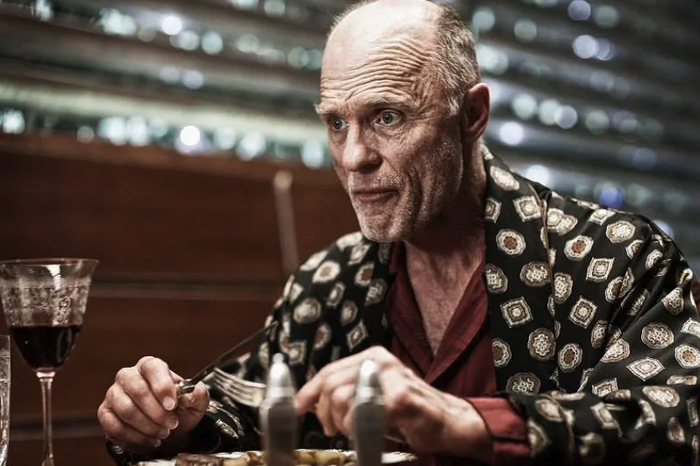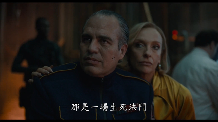 他在本片中饰演的肯尼斯·马歇尔,有着某种畸形的控制欲和表演欲,智商低下,冲动易怒,动辄以高等种族自居,并扬言要去异星建立纯种高级国家,实在是一个映射诸多历史和现实人物的小丑领袖。