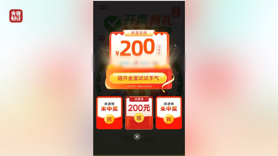 为了了解事情的真相,记者进行了大量的体验。“诺诺网”是一家电子发票第三方服务平台。在“诺诺网”开发票时记者发现,提交发票信息之后,在没有进行任何操作的情况下,页面会自动出现跳转,跳转至大转盘小游戏,进而引导记者进行抽奖。点击抽奖,系统随即提示“抽中大奖”,奖品是“200元话费券”。然而记者购买后,并没有任何话费到账,也没有看到200元的话费券,于是记者拨通了客服电话。