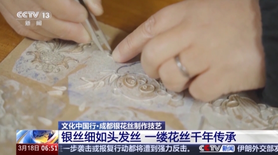 一把镊子、一把剪刀、一块耐火石棉板,粗细不等的银丝,这样一些看似简单的工具和材料,经过银花丝技艺传承人的妙手,便可成就出一件件光彩夺目的银花丝作品。今天的《文化中国行》,让我们一起了解成都银花丝。