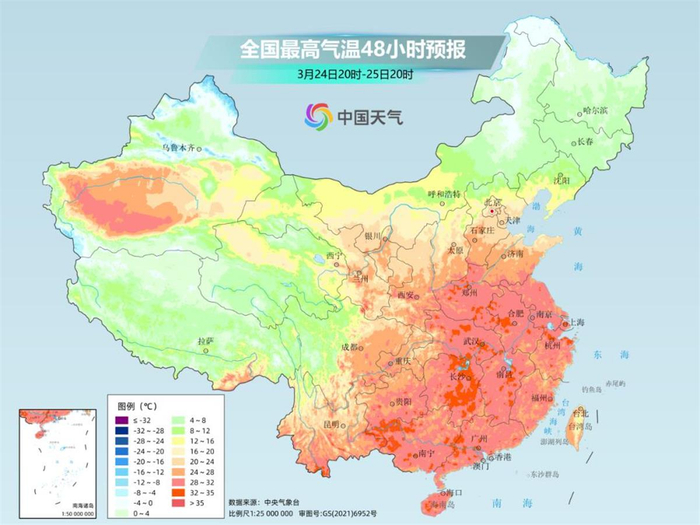 而南方气温创新高的时间会稍微滞后一些,预计25日至26日,合肥、武汉、南京、上海、杭州、长沙、南昌、重庆、贵阳、成都等地的最高气温将先后刷新今年来新高。并且,长沙、南昌26日最高气温都可能达到33℃,如果兑现,都将打破当地3月最高气温纪录。