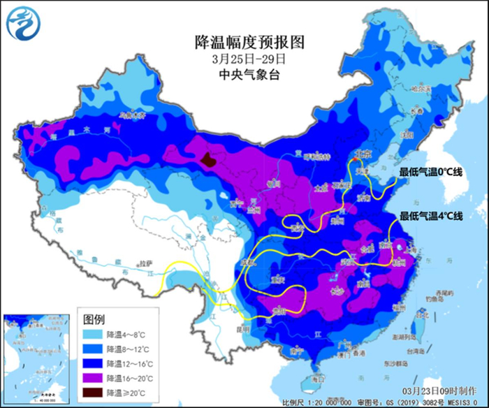 此外,本周气温回升趋势将被打断,天气出现转折。预计3月25日至29日,新一股寒潮会自西向东影响我国,除青藏高原外的大部地区气温将先后下降8~12℃,部分地区降温幅度可达14~18℃;北方还将出现大范围大风沙尘天气,淮河以南局部地区将出现强对流天气。其中,25日至26日主要影响西北地区、华北西部,27日至29日将影响中东部大部地区。