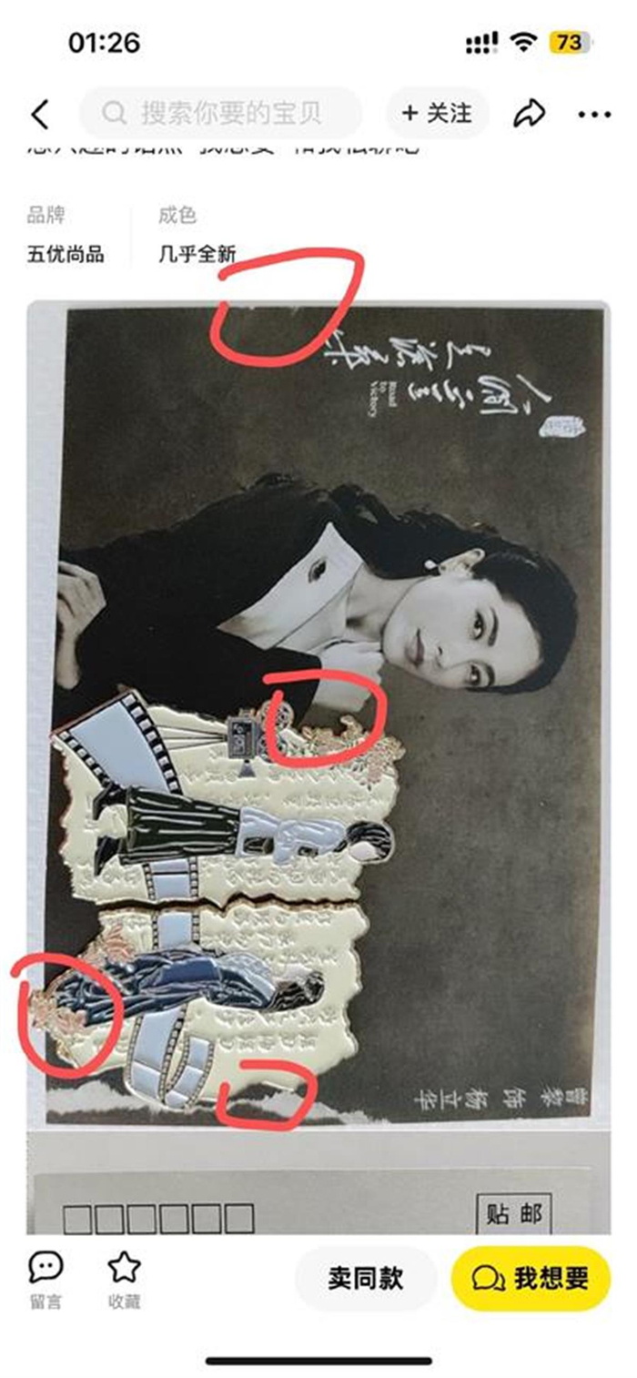网友红线圈出处显示,被售卖的徽章与自己送给曾黎的徽章细节磨损一致