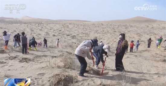 这几天,上千名志愿者来到甘肃武威市民勤县,义务压沙植树,为筑牢西部生态安全屏障贡献力量。