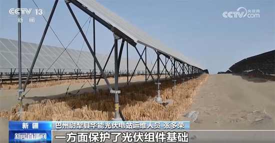 巴州尉犁县华能光伏电站运维人员张多荣称:“大概两个月时间就能抽穗发芽了,一方面保护了光伏组件基础不被黄沙掩埋或掏空,另一方面改善了周围环境。”
