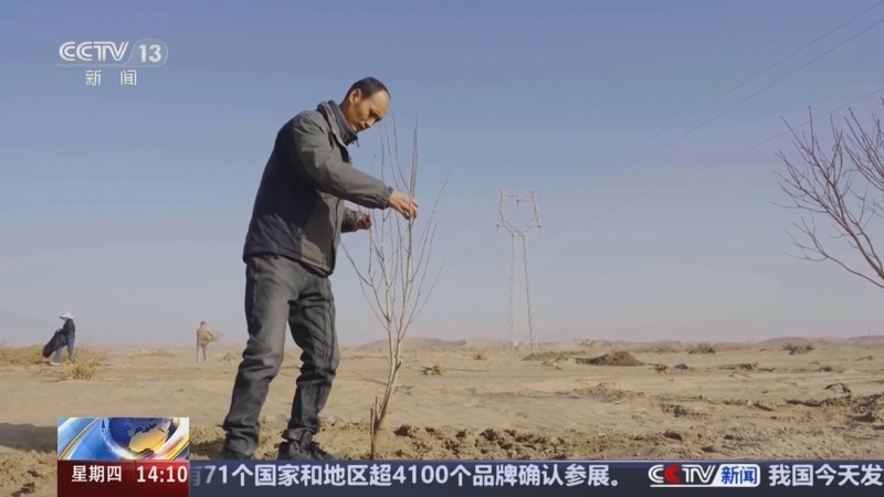 甘肃民勤:压沙植树 今年预计治沙2000余亩
